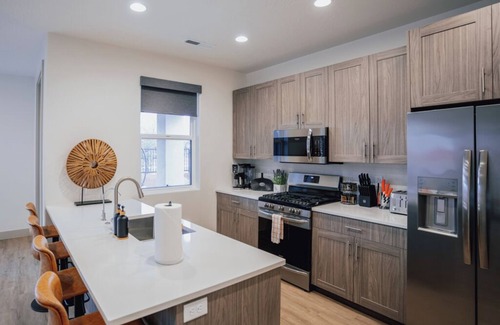Welcome to this charming townhome in Santa Clara. This superb property features 3 cozy bedrooms - one with a king bed, one with a queen bed, and a fun bunk bed room. The 3 bathrooms are equipped with all the wonderful amenities you need, including a bathtub and shower. With AC, heating, an iron, and a hair dryer provided, guests will feel right at home. Book now and enjoy everything this townhome has to offer.
