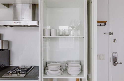 À votre arrivée dans cette location avec 1 chambre et 1 salle de bain, vous trouverez également un salon et la climatisation. Connectez-vous au Wi-Fi ou installez-vous confortablement devant la télévision. une chaîne hi-fi est également à votre disposition. Parmi les équipements de salle de bains, vous trouverez un sèche-cheveux et des serviettes. Préparez un bon petit plat maison dans la cuisine équipée de tout le nécessaire : un four, une plaque de cuisson et un réfrigérateur, mais aussi une cafetière et des ustensiles de cuisine. Et grâce à la machine à laver et au sèche-linge, vous pourrez même vous permettre de voyager un peu plus léger. Parmi les autres équipements et services, vous trouverez des draps, une planche à repasser, sur demande et chauffage.