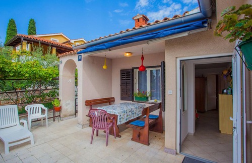 Au rez-de-chaussée d'une maison individuelle, sur l'île de Cres et la ville du même nom, se trouve cet appartement de vacances aménagé de manière fonctionnelle. Devant l'appartement, une terrasse avec barbecue est à votre disposition et à l'intérieur, un salon avec cuisine, une salle de bain et deux chambres à coucher vous attendent. L'île de Cres est connue pour son élevage de moutons et sa production de laine séculaires. Vous trouverez des restaurants, des cafés et des magasins dans la vieille ville et nous vous recommandons tout particulièrement la dégustation du délicieux rôti d'agneau ainsi que d'autres produits locaux. Profitez de l'occasion pour faire une excursion d'une journée sur l'île voisine de Mali Loinj, reliée par un pont.