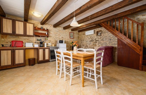 Cette belle maison en pierre se trouve dans le petit village de Rezanci, dans l'intérieur de l'Istrie. La maison a été entièrement rénovée et l'aspect indigène d'une atmosphère particulière est enrichi par une décoration moderne. La maison se compose de deux unités avec entrée séparée, ce qui la rend idéale pour deux familles ou groupes d'amis. Au rez-de-chaussée se trouvent les salles de séjour, et un escalier en bois mène à l'étage supérieur où se trouvent les chambres à coucher. Dans une unité, la salle à manger est plus grande, ce qui permet aux hôtes qui le souhaitent de dîner ensemble, ce qu'ils peuvent faire dans une taverne traditionnelle ou sur une terrasse couverte dans la cour intérieure. La cour est entièrement clôturée et conçue aussi bien pour les enfants que pour les adultes qui, en plus de la piscine, apprécieront particulièrement l'ombre d'un arbre centenaire. Dans le village voisin de Svetvincenat, on peut voir une forteresse monumentale en pierre datant du 16e siècle. L'endroit est idéal pour des vacances actives et constitue un bon point de départ pour explorer les environs. Si vous vous dirigez vers l'ouest, vous serez accueilli par la belle Rovinj et sa vieille ville pittoresque. À l'est, le touriste Rabac et de nombreuses baies avec de belles plages et une mer cristalline vous attendent. Si vous vous dirigez vers le sud, vous arriverez à Pula, où se trouvent de nombreux monuments du passé, comme l'amphithéâtre romain. Au nord, vous verrez des villages médiévaux pittoresques, comme Motovun, où se déroule chaque année un festival international du film à la fin du mois de juillet. En parcourant de nombreuses routes des vins, vous tomberez sur des tavernes locales qui proposent des délices locaux.