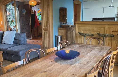 Ce salon se prolonge vers une grande table pouvant accueillir 10 personnes pour des repas conviviaux face à la mer. Wifi gratuite (fibre)