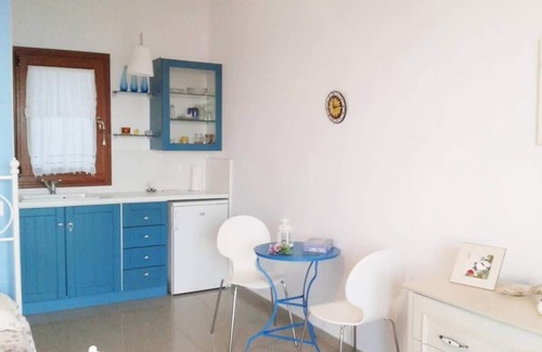 L'île d'Ammouliani est un petit coin de paradis, une combinaison idyllique de sable doré et de mer aigue-marine. Profitez de votre séjour dans un studio situé au rez-de-chaussée, dans notre bâtiment écologique situé près de la mer et alimenté par l'énergie solaire. Il peut accueillir 2 personnes. Il comprend un espace ouvert avec 1 lit double, une armoire, des tiroirs, une table basse pour 2 personnes, une kitchenette et une salle de bains privative avec douche. La résidence comprend un parking, un jardin et un barbecue communs. Lieu idéal pour se détendre loin de l'agitation de la ville!