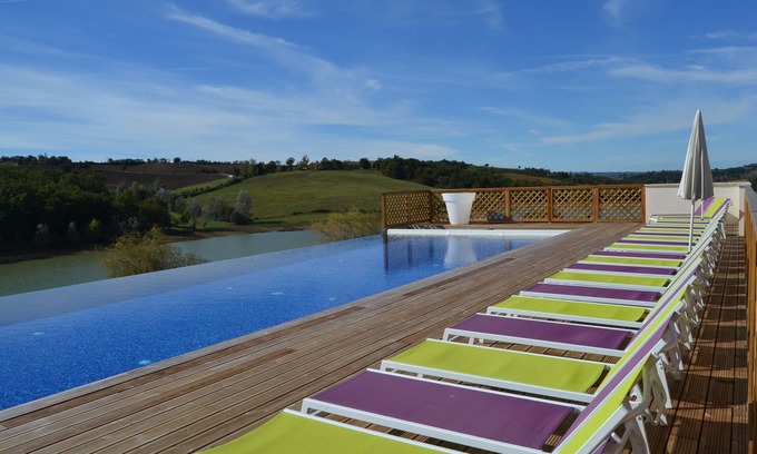 Grande piscine chauffée à débordement et petite piscine enfant faible profondeur (ouvertes de Mai à Octobre selon météo).