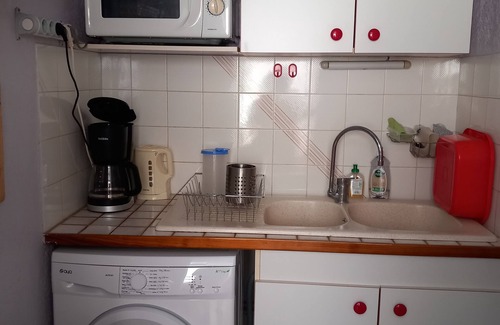 Aspirateur, lave linge, table et fer à repasser, grande plancha, et grill, petit matériel électro ménager, cafetière, grill pain, casseroles, poeles, cocotte minute, cuit vapeur et divers appareils sont à disposition.