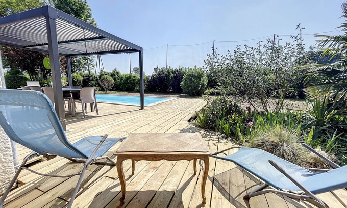 Maison avec piscine dans un parc boisé is located in La Lande-de-Fronsac. Maison avec piscine dans un parc boisé provides accommodation, featuring Literie/Linge de maison, Installations de bien-être, Barbecue/Cuisine en plein air, among other amenities. This Maison features Literie/Linge de maison, Installations de bien-être, Barbecue/Cuisine en plein air, to make your stay a comfortable one.