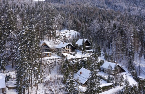 Ce magnifique chalet est situé au milieu des Alpes slovènes, avec une vue imprenable sur les montagnes et le lac Jasna, où en été il est même possible de se baigner.
