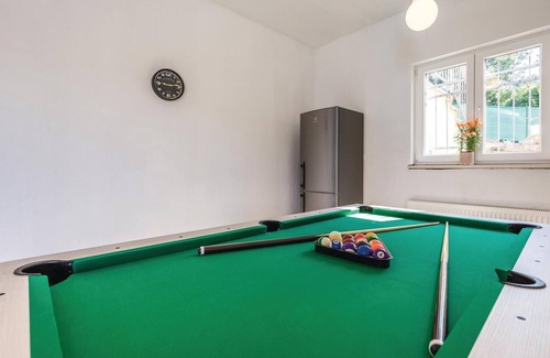 Cette maison de vacances spacieuse bénéficie d'un emplacement calme et d'une vue panoramique sur toute la baie. Elle dispose de cinq chambres à coucher au total et assure une ambiance de vie agréable. Au rez-de-chaussée se trouve une salle de loisirs avec billard, fléchettes et baby-foot, tandis que sur le terrain bien entretenu se trouvent une piscine avec une zone de bronzage et un pavillon avec barbecue. Pour le plaisir de jouer des plus jeunes, il y a une balançoire, une bascule, un toboggan et une maison de jeux. Dans le grenier (toit incliné à environ 120 cm), un jacuzzi assure la bonne détente. Ici, une chambre à coucher est une pièce de passage. En quelques minutes en voiture, vous atteindrez Opatija avec ses restaurants, ses bars, ses cafés et ses nombreuses manifestations.