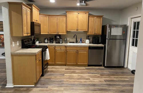 Maison 2BR / 2BA avec une tonne de capacités de divertissement. Immense cour arrière clôturée avec foyer, beaucoup de sièges, grill extérieur, télévision extérieure. Table de billard, ping-pong, fléchettes et TV partout. Escapade parfaite pour une famille ou un enterrement de vie de jeune fille / garçon. Dix minutes ou 10 dollars des bars du centre-ville et de nos belles plages. Il y a aussi un matelas pneumatique queen et les 3 parties du canapé sont inclinables. Je suis également capitaine de bateau avec accès à plusieurs types de bateaux. Ponton, consoles centrales, bateaux pontés. Je suis prêt à prendre des groupes pour la journée et nous pouvons discuter des paiements séparément.