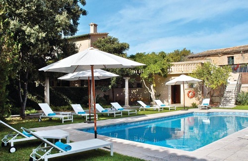 Le superlatif des maisons de vacances un joyau pour les hôtes exigeants et gâtés. Cette maison de maître bien entretenue est située comme une oasis rafraîchissante au cœur du légendaire petit village de montagne dans la vallée des orangers. Une maison d'angle spacieuse avec un jardin romantique, une piscine bien entretenue ainsi qu'une employée de maison vous attendent pour des vacances uniques. Le chêne vert centenaire, les pelouses bien entretenues ainsi que l'agréable toit de feuillage au-dessus de la terrasse d'été invitent à la détente. Bien que vous habitiez dans un petit village de montagne, vous bénéficiez néanmoins d'une relative intimité, car le terrain jouxte un atelier de tissage désaffecté. C'est là que les Majorquines fabriquaient autrefois les tissus typiques du pays. Aujourd'hui, le bâtiment attend une future transformation, encore lointaine, en musée du chemin de fer. Dans la maison, 7 chambres élégantes en suite sont à votre disposition. Caty vous aide du lundi au samedi à préparer le petit déjeuner (dresse la table, prépare le café et le jus d'orange frais), fait les lits et nettoie la maison. Une petite promenade vous mènera au centre de Soller, où vous trouverez des cafés confortables, de bons restaurants et un glacier très fréquenté proposant des spécialités glacées fabriquées localement. Une virée shopping à Palma ? Montez tout simplement dans le train romantique et voyagez à travers un paysage de rêve jusqu'à la capitale de l'île. La magnifique baie de Puerto Soller (4 km) est accessible en quelques minutes en voiture ou avec l'ancien tramway, une véritable expérience. Dans la baie de Soller, vous pouvez profiter de la vie sur la plage, manger dans l'un des célèbres restaurants de poisson ou flâner sur la promenade populaire. Grâce à la liaison pratique par tunnel, Palma peut être atteinte en seulement 20 minutes. Près de la piscine, les hôtes disposent également d'un WC de jardin pratique. L'électricité est incluse. Groupes (sauf familles et couples de plus de 30 ans) sur demande et avec caution spéciale.