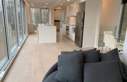 Maison conteneur unique en son genre avec vue panoramique sur les montagnes située tout en haut du Mont-la-Tuque. Façade de fenêtres et design de maison qui permet de ne faire qu’un avec la nature. Idéal pour les amateurs de ski (4 minutes de la station de ski Mont-Tremblant Versant Nord) et à 12 minutes du village piétonnier de Mont-Tremblant. Accès privé à la rivière du Diable et proximité du magnifique Lac Supérieur. Plongez dans la nature tout en profitant d’une maison architecturale haut de gamme.