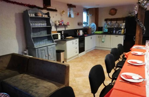 Vous pourrez disposer d'un coté de la maison d'une pièce avec cuisine ouverte (+ arrière cuisine), donnant sur un séjour-salon avec cheminée ouverte entièrement restaurée avec poutres apparentes. En prolongement vous pourrez disposer d'une deuxième grande salle équipée également d'une cuisine aménagée pouvant accueillir facilement l'ensemble des convives.