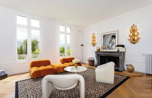Salon : Profitez du confort d'un mobilier contemporain et de la chaleur d'une grande cheminée en marbre d'époque. Détendez-vous en écoutant vos vinyles préférés sur la platine vinyle, accompagnée d'un sound system de qualité, et préparez vos boissons au mini bar.