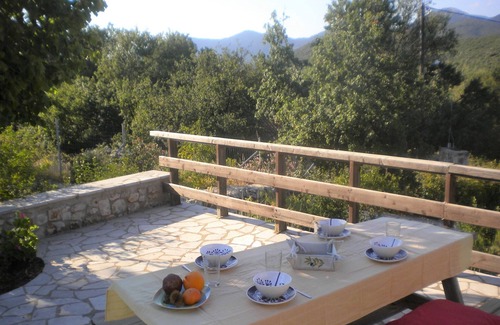 La maison de vacances et deux autres maisons restaurées forment un petit quartier. Les trois maisons de vacances restaurées forment un petit quartier dans un grand jardin de 10 000 m2. Ils offrent une vue unique sur le jardin, les sommets du mont Parnon et le village voisin d'Amygdalia. Maintenant, après une restauration récente, les maisons conservent les caractéristiques morphologiques les plus importantes des murs en pierre, la cheminée, le style typique des Arcadiens. La maison est située entre les plages et les villages de montagne de Leonidio. Les plages voisines de Fokianos et Poulithra sont à 15-20 minutes en voiture (12 km). Le mont Parnon et la ville de Leonidio sont à 18 km. Un paysage calme, sur un plateau à 650m d'altitude. La température est donc inférieure de 4 à 6 degrés à celle de la ville ou de la côte. Il y a une atmosphère fraîche et sèche, agréable pour les nuits d'été. La région est populaire pour la plongée, la randonnée et l'escalade. Cette maison est idéale pour des vacances reposantes, une base pour l'escalade, la randonnée et pour explorer le Péloponnèse. Il convient à la location à long terme (salon spacieux et agréable, machine à laver, cuisine).