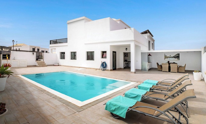 Maison de vacances "Casa Africa" avec vue sur la montagne, piscine privée et Wi-Fi is located in Tahiche. Maison de vacances "Casa Africa" avec vue sur la montagne, piscine privée et Wi-Fi provides accommodation, featuring Sécurité sureté, Barbecue/Cuisine en plein air, Vue sur l'océan, among other amenities. This Maison features Sécurité sureté, Barbecue/Cuisine en plein air, Vue sur l'océan, to make your stay a comfortable one.