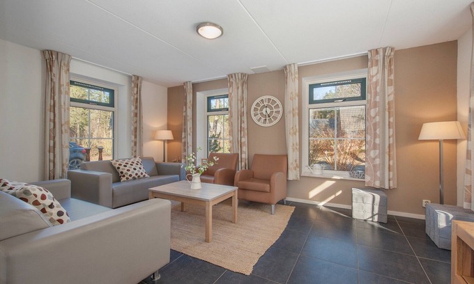 Ce bungalow indépendant se trouve dans le domaine boisé le Grote Zand. Vous pouvez y séjourner avec maximum sept adultes ou six adultes et deux enfants. Ceci est dû à l'alcôve du premier étage. Elle peut accueillir soir deux enfants, soit un adulte. Le bungalow est confortable et entièrement aménagé. La cuisine dispose d'un four micro-ondes combiné et d'un lave-vaisselle. Vous disposerez d'une salle de bains avec douche au rez-de-chaussée ainsi qu'au premier étage. Il y a trois chambres à coucher, dont une au rez-de-chaussée et deux au premier étage. Les chambres à coucher disposent chacune de deux lits 1 personne, qui ne sont pas aménagés en lits doubles. L'alcôve pour 2 personnes (enfants) se trouve au premier étage. Dehors se trouve un jardin avec terrasse et mobilier de jardin. Le bungalow dispose d'une place de parking pour deux voitures. Le domaine Het Grote Zand loue des bungalows pour 4, 6, 10 et 12 personnes.
