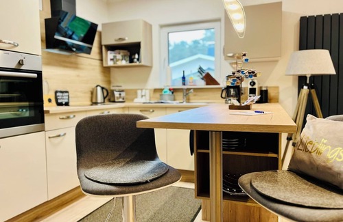 La barre de son, le canapé confortable et la cuisine entièrement équipée intégrée contribuent au confort et vous invitent à vous attarder et à profiter. Si vous voulez vous faire dorloter à nouveau, la cuisine moderne et ouverte est le bon endroit pour vous. Vous trouverez ici une plaque vitrocéramique, four, réfrigérateur avec compartiment congélateur, micro-ondes avec grill intégré, filtre et machine à café Nespresso, grille-pain, œufs et bouilloire et