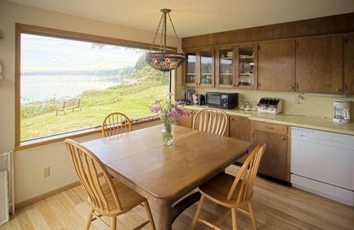 Le pont est l'endroit idéal pour lire, parler et se détendre dans les meubles en pelouse en vernis, car vous voyez la faune éphémère; Les cerfs, les lapins, les phoques, les aigles, les colibris et les loutres de mer augmentent régulièrement nos rivages. Regardez-les depuis notre confortable canapé à côté du poêle à bois avec un piano, des livres, des vidéos et de la musique à partager, plus une cuisine entièrement équipée, ajoutez simplement de la nourriture!