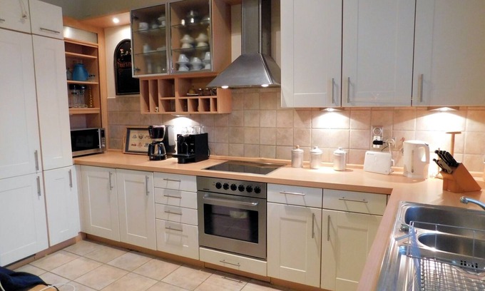 La propriété offre une chambre avec un lit double et un lit simple, une salle de bain, une cuisine entièrement équipée avec four, lave vaisselle, réfrigérateur, cafetière Nespresso, cafetière, grille-pain, micro-ondes et machine à laver.