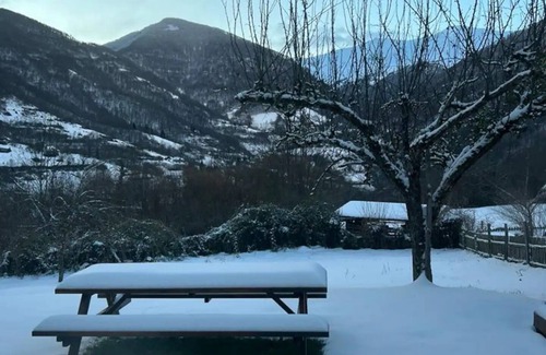 Découvrez la Maison Miravel à Hameau d'Anos, Saint Lary en Ariège. Nichée à 900m d'altitude, cette demeure offre 2 chambres lumineuses, un grand jardin avec vue sur les Pyrénées, parfait pour 4 personnes.