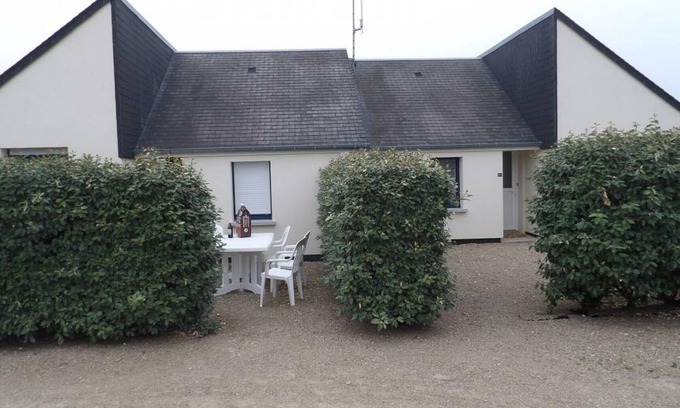 Maison mitoyenne entièrement en rez-de-chaussée. Séjour. Coin-cuisine. 1 chambre avec 1 lit 140. 1 chambre avec 2 lits 90 superposés. Salle d'eau. Wc. Lit et chaise bébé sur demande. Accès Wifi. Salle d'eau. Wc. Lave-vaisselle. Lave-linge et sèche linge communs payants (jetons). Chauffage électrique en supplément. Draps et linge de maison non fournis. Service ménage en supplément. Terrain non clos commun.Bains de soleil. Barbecue collectif. Arrivées possible uniquement entre 16h et [hidden] locataires venant avec un animal se verront facturer une heure de ménage en cas de non respect des consignes de propreté. Secteur côtier très préservé, à l'Ouest du Cotentin, qui comblera les amoureux de la nature. Village implanté dans les dunes (de 50 m à 200 m de la mer)
