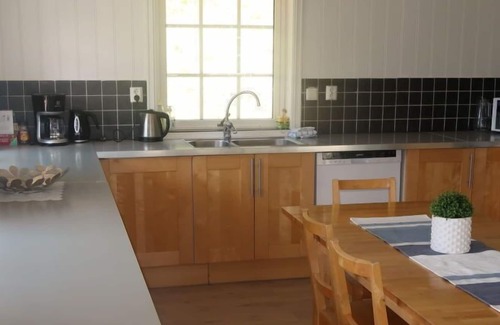 "Odin", 5-room house 200 m2 on 2 levels. Spacious, tasteful and cosy furnishings: living/dining room with Scandinavian wood stove, dining table, satellite TV, international TV channels and DVD. Exit to the terrace. 1 room with 1 double bed. Open kitchen (oven, dishwasher, 4 ceramic glass hob hotplates, microwave, freezer, electric coffee machine). Shower/WC, hydro massage bath, Sauna. Upper floor: 1 room with 1 double bed. Exit to the balcony. 1 room with 1 double bed. 1 room with 2 beds. Shower/WC. Electric heating, underfloor heating. Facilities: washing machine, dryer. Internet (WiFi, extra). Please note: maximum 1 pet/ dog allowed. Smoke alarm, fire extinguisher. Freezer approx. 400 l. 924531169