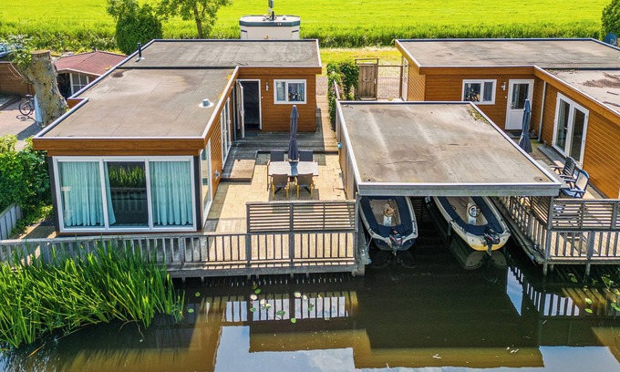Joli chalet spacieux comprenant un sloop sur un parc situé au calme, au milieu de la nature et des prairies. Tout respire la paix et le calme et l'atmosphère est très agréable. Le chalet dispose de 3 chambres, d'une salle de bain et d'un espace de vie avec cuisine ouverte. Il est très moderne. L'endroit est unique et dispose d'une terrasse spacieuse avec une jetée et un hangar à bateaux couvert où se trouve le sloop qui appartient à la maison. Le carburant pour le sloop n'est pas inclus