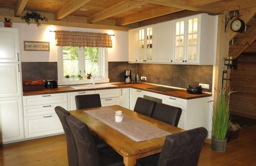 Timber house "Trollstua", built in 2020, surrounded by trees, meadows and fields. Outside the resort, 3 km from the centre of Großenkneten, in a quiet position, in the countryside. Private: natural state property 3'000 m2 with wildlife garden and trees, meadow, parking (for 3 cars) at the house. Shop 3 km, restaurant 3 km, bakery 3 km. Golf course (9 hole) 10 km.