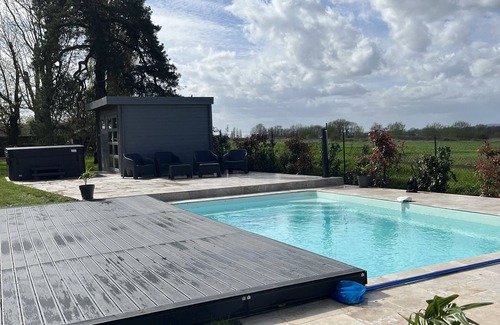 Un grand jardin avec espace de jeu, terrain de pétanque, table de ping pong,(piscine, sauna et jacuzzi à partir d'avril 2024)