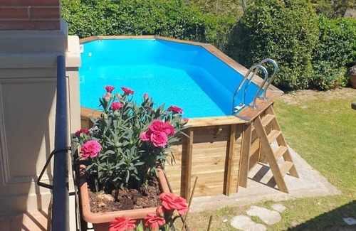 Et une maison très grand (200m²) dans le vert, avec une vue splendide de la Certosa di Firenze. Dispose d'un jardin de 150 mètres carrés avec une piscine privée et d'un belvédère, table et chaises.