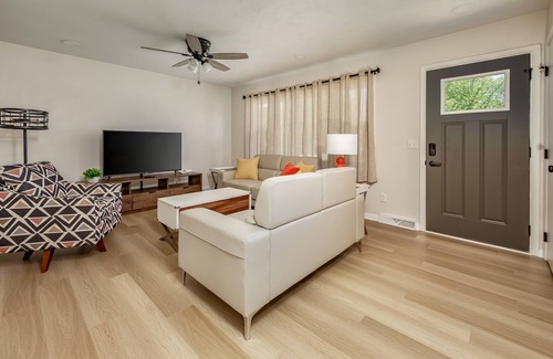 This newly renovated 3 BR Moline ranch home is fully equipped and conveniently located for easy access to the Quad City Airport, John Deere Road, Avenue of the Cities, and Bettendorf/Davenport, IA. Ready for your personal or business stay, this home features new furniture, kitchen, and flooring throughout the main level. The main bathroom features a new tub/shower combination, and double vanity sink. There is an additional full bathroom in the basement with a new tiled shower. Relax and unwind while nestled in front of the 55" smart TV, or bring your own device and connect to fast whole home wifi. Welcome to Moline and the entire Quad Cities!