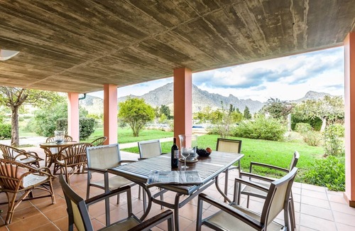 The exterior area is wide and inviting, with large gardens and swimming pool. There is also a stone built BBQ for delicious charcoal grilled meals. From the poolside, guests can also enjoy magnificent views over the high Tramuntana mountains. The gardens are beautifully kept with shrubs, lawn and flowers.