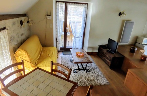 Au rez-de-chaussée, coin-cuisine (combiné four/lave-vaisselle 6 couverts), 1 chambre avec 1 lit 2 personnes, salle d'eau avec WC (douche 70x70cm). Avec accès par trois marches, séjour avec TV écran plat et accès internet wifi. En mezzanine, 2 lits 1 personne. Chauffage électrique selon consommation. Hébergement qualifié Écogestes.