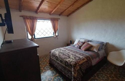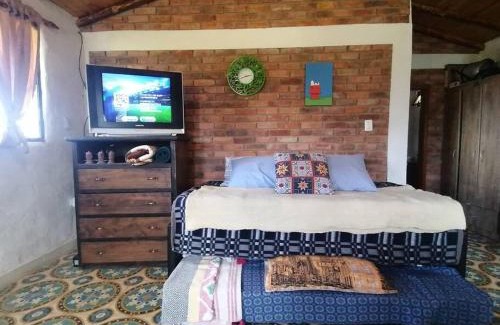 Situé à Fúquene, dans la région de Cundinamarca, le Mountain Cabin - Nature and Relax dispose d'un balcon et offre une vue sur le jardin. Vous bénéficierez d'un parking privé gratuit et d'un service de navette aéroport payant. Doté d'une connexion Wi-Fi gratuite, ce chalet d'une chambre dispose d'une télévision à écran plat, d'un lave-linge ainsi que d'une cuisine entièrement équipée avec un micro-ondes et un réfrigérateur. Cet établissement est non-fumeurs. Si vous souhaitez partir à la découverte des sites d'intérêt des environs, le chalet propose une sélection de paniers-repas. Lors de votre séjour au Mountain Cabin - Nature and Relax, vous pourrez faire de la randonnée et des randonnées à pied à proximité ou profiter du jardin. L'aéroport international El Dorado, le plus proche, est implanté à 105 km.