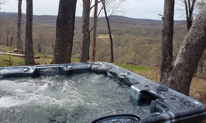 This is a new construction cabin at the top of a mountain with an amazing view. It has a 7 person private hot tub, full kitchen, washer and dryer, shower with endless hot water, grill and WiFi. Warm and cozy