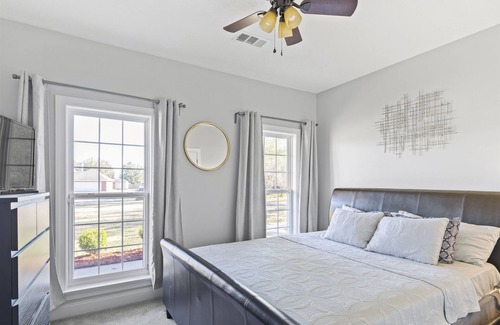 This is a gorgeous 4 bedroom 3.5 bath home with a huge bonus room that has a movie projector, pull down screen, & pool table! Located in a cul-de-sac, you are just minutes from all that Montgomery and Pike Road has to offer. Each bedroom has a smart tv, free high speed internet, & clean, comfortable living. There is a spacious great room with a fireplace that is the perfect place to relax and enjoy some much-needed downtime. The kitchen is fully equipped and offers a gas cooktop, double ovens, an island, a breakfast bar, a pantry, and plenty of room to whip up your favorite meal. Enjoy mealtimes with family and friends in the beautiful separate dining room that seats 6 or in the breakfast area in the kitchen that seats 3. The master suite has two walk-in closets, two sinks, a separate shower, and a clawfoot tub that is perfect for soaking. The other 3 bedrooms are very spacious and can accommodate your guests comfortably. There is also a laundry room with a sink that is helpful with any laundry that may need a little extra scrub. Outside, you will find an attached 2-car garage, plenty of parking space, and an outdoor fire pit. There is a screened-in porch is a great place to hang out with lots of seating, a tv, a dart board, and a fireplace for those cozy nights! Enjoy this Rolling Hills Retreat!