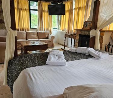 Salle de bainsChaussons, Bonnet de douche, Toilettes, Salle de bains privative, Douche, Articles de toilette gratuits, Shampoing, Papier toilette, Savon, Sèche-cheveux, ServiettesHigh-techTélévision, Télévision à écran platEn extérieurPatio, Mobilier d’extérieur, Terrasse, BalconCuisineVerres à vin, Machine à café, Ustensiles de cuisine, RéfrigérateurCoin salonCanapé, Coin salon, CheminéeGénéralClé d'accès, Entrée privée, Poubelles, Insonorisation, Chauffage, ExtincteurVueVue sur un site d'intérêt, Vue sur la montagne, Vue sur la rivière, Vue, Vue sur le jardinChambreLinge de maisonAccessibilitéÉtages supérieurs accessibles uniquement par les escaliersÉquipements en chambreCanapé-lit, Lit pliant, Prise près du lit, Oreiller hypoallergéniqueRestaurationBouteille d'eau |