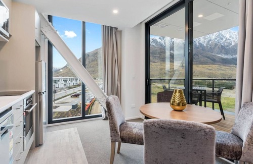 Mur à plafond vue sur la montagne | Balcon privé | Moderne et Immaculée | Appartement dans Frankton