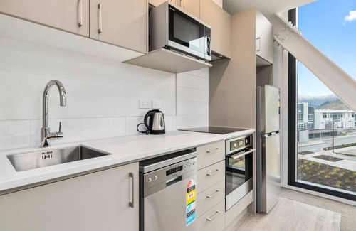 Admirez les vues pittoresques sur la chaîne de montagnes de renommée mondiale Remarkables depuis votre balcon privé. Cet appartement contemporain vous offre une vue imprenable sur la montagne depuis le 3ème étage.