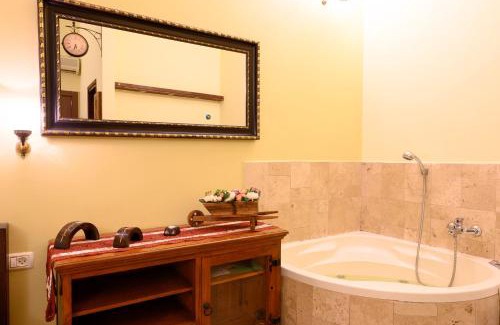 RestaurationChocolats ou biscuits, Plateau / bouilloireSalle de bainsBaignoire spa, Peignoir, Toilettes, Douche, Papier toilette, Shampoing, Articles de toilette gratuits, Après-shampoing, Savon, Serviettes, Sèche-cheveux, Salle de bains privativeGénéralPoubelles, Climatisation, Extincteur, Sol carrelé / en marbre, Chambre(s) communicante(s) disponible(s), Chauffage, Détecteur de fumée, InsonorisationActivitésBain à remousCuisineProduits ménagers, Bouilloire électrique, Plaque de cuisson, Verres à vin, Ustensiles de cuisine, Réfrigérateur, Kitchenette, Machine à café, Micro-ondesEn extérieurTerrasse, Balcon, Mobilier d’extérieur, BarbecueCoin salonCoin repas, Bureau, Coin salonChambreDressing, Linge de maison, Armoire ou penderie, Lits enfant/berceauxHigh-techChaînes du câble, Télévision à écran platAccessibilitéLogement entièrement situé au rez-de-chausséeÉquipements en chambrePrise près du lit, Portant, Oreiller en plumesDistanciation physiqueClimatiseur indépendant dans les hébergementsNettoyage et désinfectionGel hydroalcoolique |