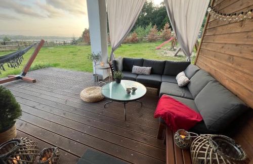 Situé à Garcz, le Na Kaszubskim Wzgórzu z sauną i banią propose des hébergements avec piscine privée, connexion Wi-Fi et parking privé gratuits. Construit en 2020, l'établissement comprend un sauna et un bain en plein air. La villa possède une cheminée extérieure et une réception ouverte 24h/24. Offrant une vue sur le lac, cette villa dispose d'une terrasse, de 3 chambres, d'un salon, d'une télévision à écran plat, d'une cuisine équipée avec un lave-vaisselle et un four, ainsi que de 2 salles de bains pourvues d'une douche. Les serviettes et le linge de lit sont fournis. Elle comprend également un coin salon et une cheminée. Vous pourrez également vous détendre dans le jardin. Vous séjournerez à 29 km de la gare et à 42 km du zoo d'Oliwa. L'aéroport le plus proche, celui de Gdańsk Lech Wałęsa, est situé à 30 km. Un service de navette aéroport peut être assuré moyennant des frais supplémentaires.