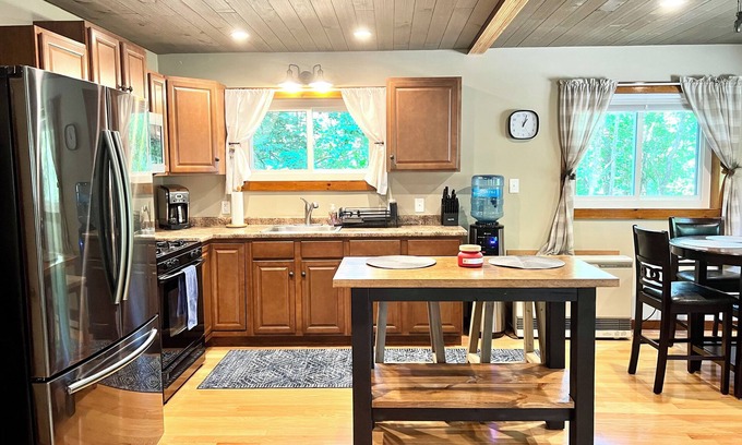 Other things to note: The home has a propane heater and pellet stove for heating in the cooler months. The home may be chilly when you enter but warms up quickly once the pellet stove is turned on. The pellet stove does require the guest to fill the hopper when empty, pellets are provided. Our water is supplied by a well. Water is clean and suitable for showering, cooking (boiled) and cleaning dishes. Since this is not a full-time, lived-in home, the water should not be used for drinking. At least one gallon of drinking water will be available upon arrival, but please also bring your own for the duration of your stay. Refunds for unforeseen weather or lack of snow will not be provided.