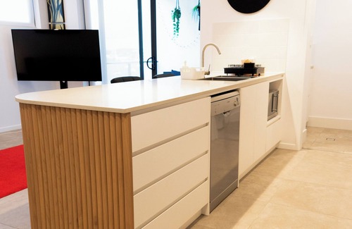 À votre arrivée sur place, vous trouverez un salon et la climatisation. Parmi les équipements de salle de bains, vous trouverez un sèche-cheveux, des serviettes et du papier toilette. Préparez un bon petit plat maison dans la cuisine équipée de tout le nécessaire : un four, une plaque de cuisson et un réfrigérateur, mais aussi une cafetière, une bouilloire électrique et des ustensiles de cuisine. Et vous pourrez même voyager un peu plus léger, car le logement est équipé d'une machine à laver et d'un sèche-linge.