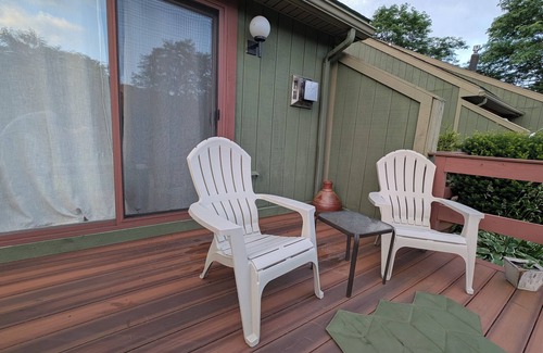 Enjoy your morning coffee or evening cocktail on the deck overlooking the ski slopes. The view is spectacular year-round! The Shallot is the end-unit, with steps right down into a grassy lawn to enjoy.