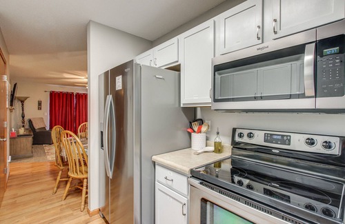 Say ‘hello’ to Iowa from this North Liberty vacation rental! With a newly decorated, 3-bed, 2-bath interior, ‘Carver Townhouse’ provides a serene space where you can forget your worries. Start each morning with coffee on the furnished balcony, then head out to the shared yard and channel your inner Hawkeye by tossing around a football. Later, don your best black and gold for a game at Kinnick Stadium or Carver-Hawkeye Arena. End the night back at the property for stargazing around the fire pit.