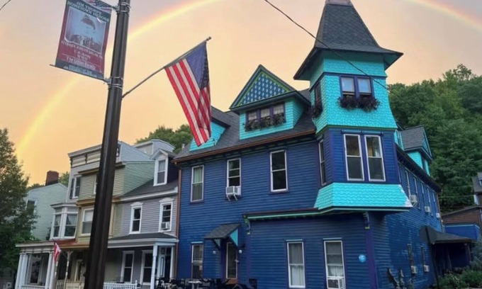 Cette propriété vient d'être rénovée et comprend deux chambres de maître, chacune avec un lit king size. Entrez dans cet espace magique avec une vue plongeante sur l'historique Jim Thorpe. Depuis la tourelle du salon, vous avez une vue directe sur la vieille prison, ainsi que sur les rues et les montagnes de l’historique Jim Thorpe.