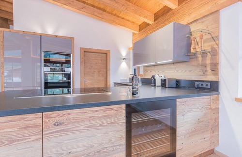 Le chalet dispose de 3 chambres avec chacune sa propre salle de bain et peut accueillir 6 personnes. La grande pièce à vivre à l’étage avec cheminée offre une atmosphère agréable pour se réunir, cuisiner et manger. La cuisine offre une plaque de cuisson en céramique de haute qualité et bien sûr un four, un four micro-ondes, un grille-pain, une machine à expresso et une machine à café, ainsi qu'un barbecue Weber sur le balcon. De plus, un réfrigérateur à vin à deux zones est intégré à la cuisine pour que les amateurs de vin puissent en profiter.