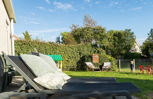 Deux terrasses ensoleillées avec table, chaises et transats et un parasol vous invitent à la flânerie et à la détente. Il y a deux places de parking devant la maison. Tout le jardin est clôturé. Pour les enfants, il y a une maison de jeu avec des chaises, un bac à sable et une charrette à bras.