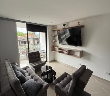 Offrant une vue sur la montagne, l’hébergement Nuevo cerca poblado 301 possède un jardin et un balcon, à environ 2,6 km de ce lieu d’intérêt : Parc El Poblado. Cet hébergement offre une vue sur le jardin et met à votre disposition une connexion Wi-Fi gratuite dans l’ensemble de ses locaux. Disposant d’une terrasse et offrant une vue sur la ville, cet appartement comprend 2 chambres, un salon, une télévision à écran plat, une cuisine équipée avec un réfrigérateur et un micro-ondes, ainsi que 1 salle de bains avec une baignoire ou une douche. Vous séjournerez à respectivement 3,3 km et 5,3 km de ces lieux d’intérêt : Parc Lleras et Arènes de La Macarena. L'aéroport le plus proche (Aéroport Enrique Olaya Herrera) est à quelques pas.
