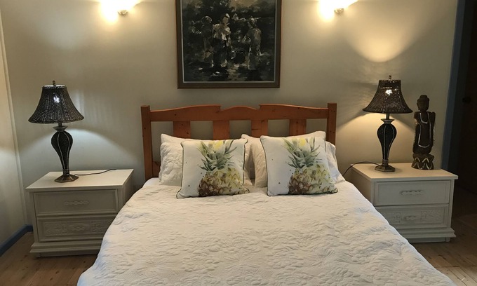 Maison de niveau inférieur de 2 chambres. À distance de marche de la plage par la piste de brousse. Cadre de brousse à partir d'une grande véranda extérieure. Situé en face des promenades côtières surplombant l'océan. Nouvelle salle de bain et cuisine. Magnifiquement décoré. Linge disponible Jardins avant et arrière pour votre plaisir. À distance de marche de grands cafés et d'autres plages. La piste Bush vous emmène à l'affût du cou.