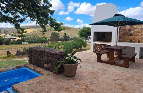 Offrant une vue sur le jardin, l'Ou Meul Farm Cottage propose un hébergement avec un jardin et une terrasse, à environ 23 km de la réserve naturelle du mont Hébron. Un parking privé est disponible sur place. Cet établissement non-fumeurs se trouve à 29 km du parcours de golf de Kleinmond. Cet appartement spacieux comprend 3 chambres, une cuisine entièrement équipée avec un four et un micro-ondes ainsi que 2 salles de bains avec un jacuzzi et un sèche-cheveux. Vous pourrez admirer la vue sur la montagne depuis le balcon, qui dispose également de mobilier de jardin. Elle comprend également un coin salon et une cheminée. L'appartement dispose d'une aire de pique-nique où vous pourrez passer une journée en plein air. Vous séjournerez à 33 km de la réserve naturelle de Howhoek et de l'Arabella Country Estate. L'aéroport international du Cap, le plus proche, est implanté à 81 km.